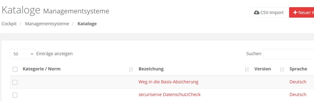 Wenn Sie DPMS als professionelles Datenschutz-Managementsystem einsetzen, können Sie eine Datenschutz-Checkliste als Katalog importieren (DS010)